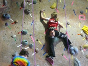 First climb was very nervous, Adam told her to start with an easy climb to get going. Video of Caroline’s First Climb